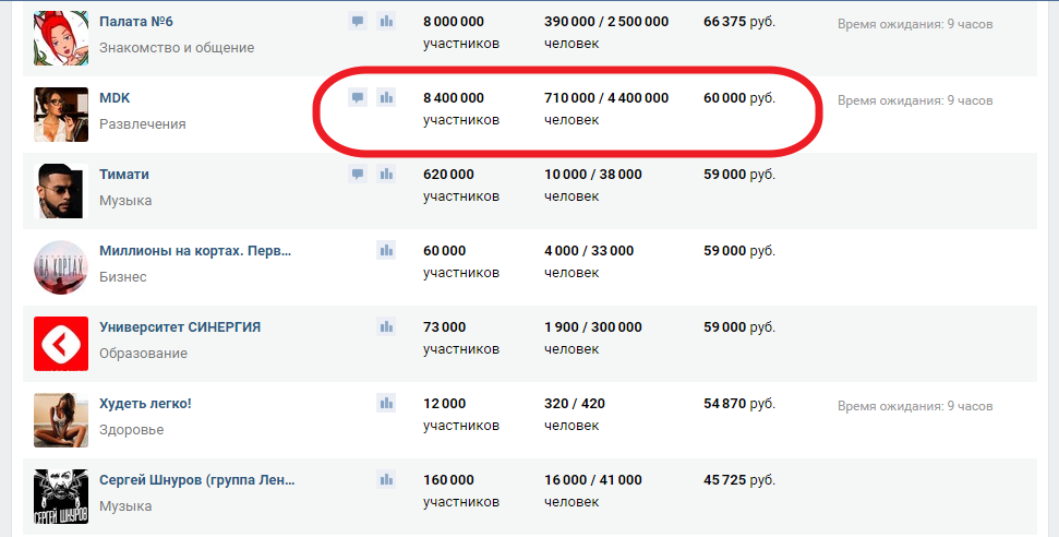 Но, чтобы попасть на биржу со своим сообществом, необходим среднемесячный охват более 30 тысяч человек. Судя по этой же бирже, можно увидеть, что группы с охватом от 30 тыс. имеют в среднем 500-800 тыс. участников.