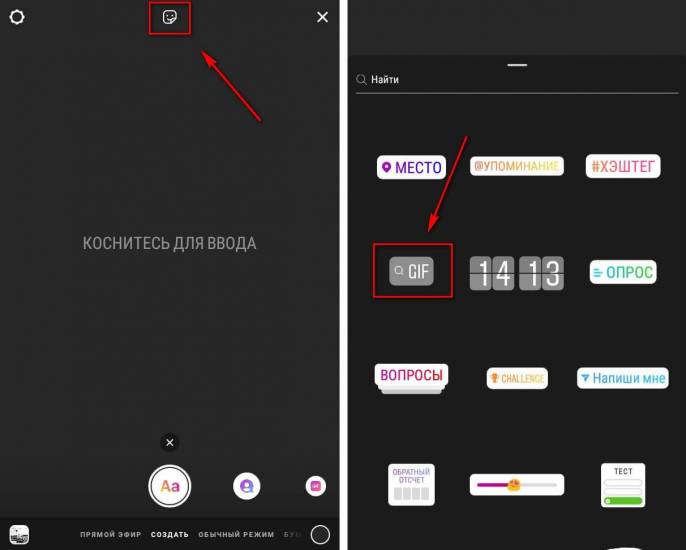 Это самый простой и быстрый способ сделать обложку — создаем статичную сторис (выбираем раздел «Создать»). Делаем однотонный фон сторис. Затем идем в стикеры и нажимаем на стикер «GIF».
