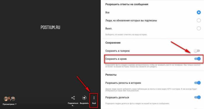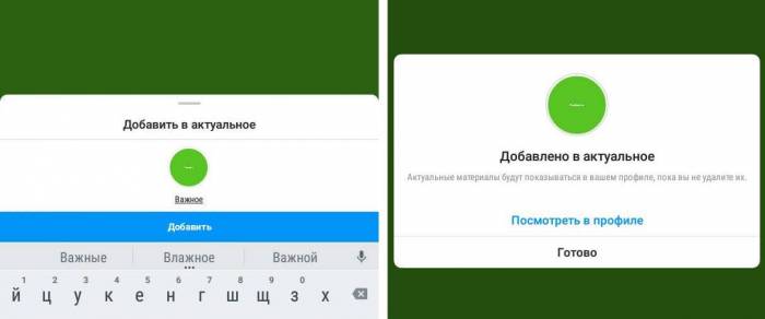 Есть еще третий самый просто способ добавить историю в хайлайты — когда сторис готова, жмем «Получатели», затем напротив «Ваша история» нажимаем синюю кнопку «Отправить». Появится пункт «Где еще поделиться» — «Добавить в актуальное». Выбираем его.