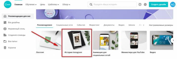 Находим шаблон с подходящим фоном, либо сразу переходим в подраздел «Обложка актуальное истории» — этот вариант предпочтительнее, так как в нем все элементы уже расположены правильно, ничего не обрежется и не выйдет за рамки.
