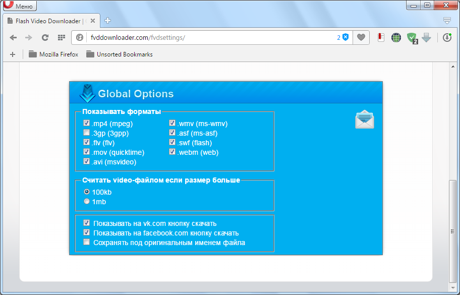 Интерфейс мне понравился не очень, поскольку он ссылается на другие расширения и просит вас оценить расширение. Но зато есть возможность управления настройками, которые вы можете открыть после установки расширения. В расширении Флеш видео есть следующие настройки: