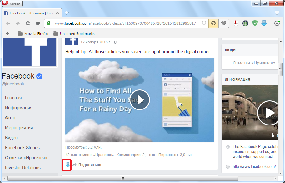 Запустится плеер, выполните правый клик на экране с роликом и выберите «Сохранить видео как…», или нажмите на клавиатуре комбинацию горячих клавиш Ctrl + S. Всё просто, видео будет загружено в папку по умолчанию или сами укажите путь для сохранения файла.