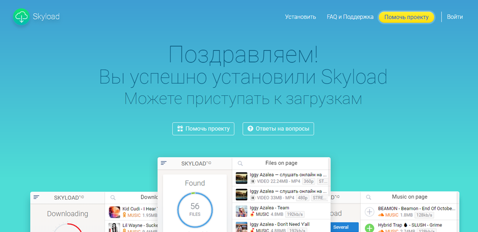 Среди плюсов Skyload стоит отметить возможность загружать не только видео. Вы легко можете скачивать музыку с таких сайтов как ВК или Youtube Music. Перед загрузкой каждый файл можно просмотреть и прослушать.