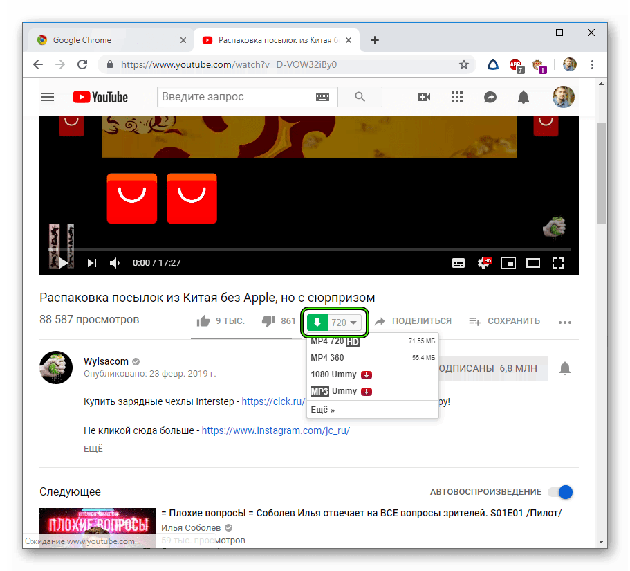 - Войдите в Chrome и найдите в YouTube ролик, который вам интересен.