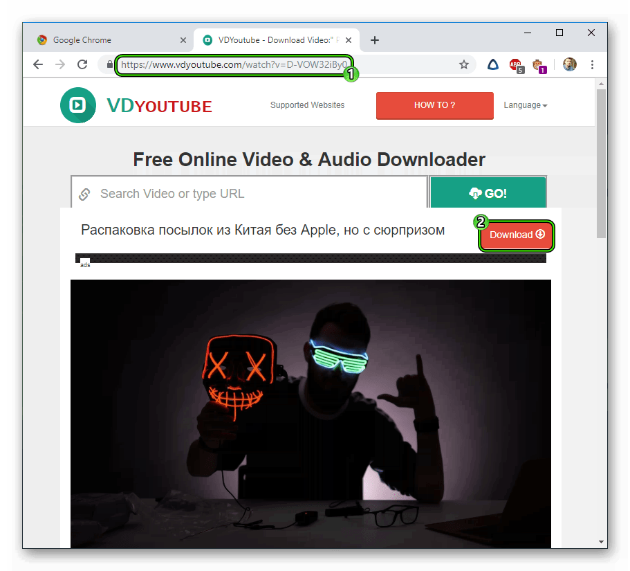 - Нажмите Enter — вы попадёте на специальную страницу для скачивания видео — нажмите здесь «Скачать без установки» расширения.