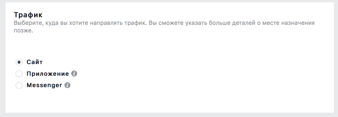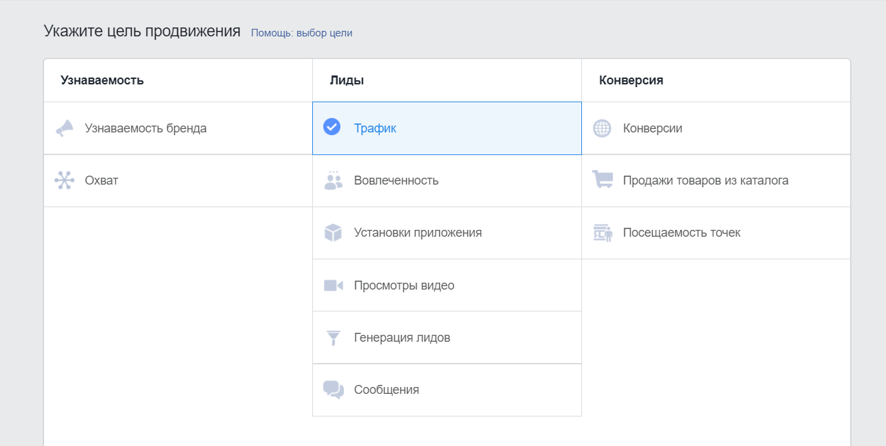 Она нужна в тех случаях, когда Вы направляете людей на Ваш лендинг, сайт. Выбор данной цели направлен на то, чтобы Вы могли подсчитывать количество заявок и их цену. Это поможет определять ваши KPI и понимать ROI рекламных кампаний.