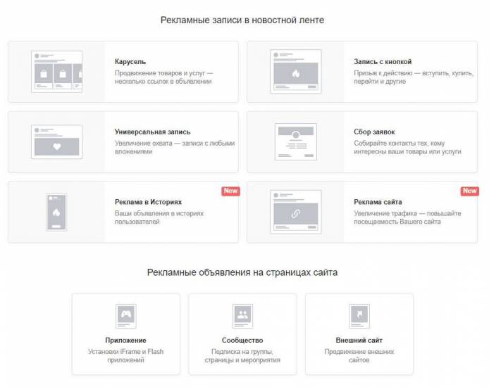 Если у Вас нет необходимости создавать публичную страницу (см. чем группа отличается от паблика), или Вы хотите рекламировать сторонний ресурс, можно сразу перейти к интерфейсу рекламного кабинета.
