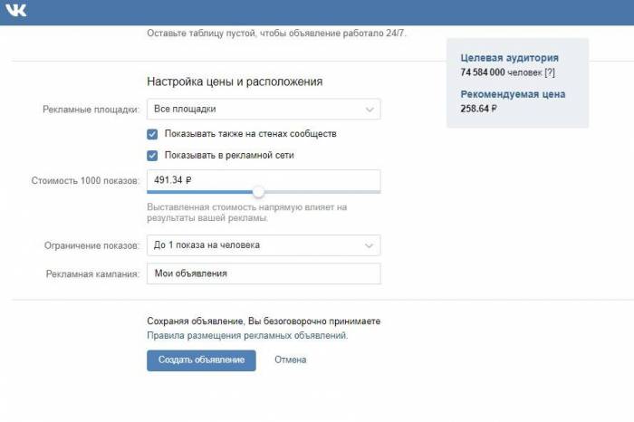 Каждый раз, когда пользователь будет заходить в группу, он будет видеть вашу рекламу. Как мы уже говорили, оплата идет за 1000 показов. Вам может показаться, что это довольно много, но нет.