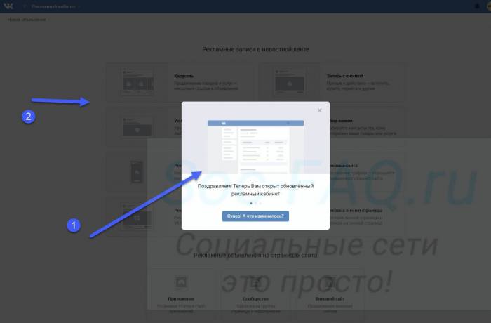 После успешного прохождения всех этапов, вы попадаете в рекламный кабинет: