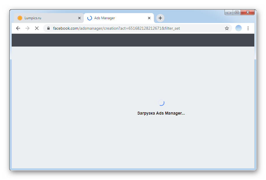 Загрузка «Ads Manager» может занять от нескольких секунд до нескольких минут.