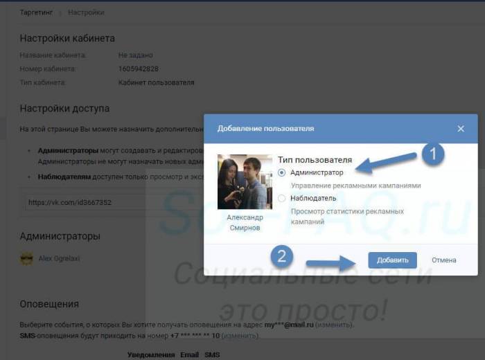 Настройки или настройка рекламного аккаунта — добавление рекламодателей и выборка уведомлений о запуске и установке рекламы, об оплате и статусе объявлений. Об этом подробнее мы поговорим чуть ниже.