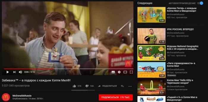 Когда пользователь будет смотреть ваше видео, с правой стороны он увидит другие брендированные ролики вашего канала. Помимо увеличения числа просмотров это еще и возможность удержания зрителя на канале.