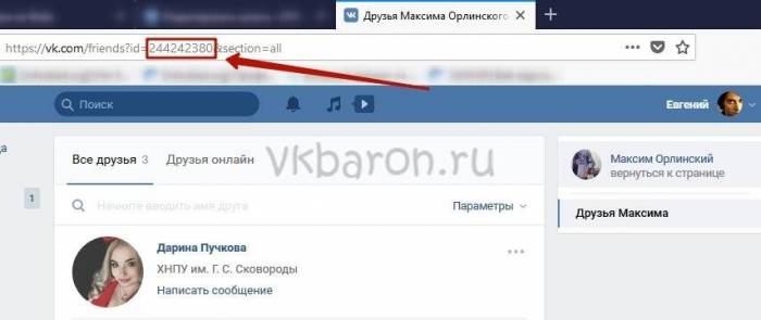 Если числовой ID был изменен на буквенный, то со страницы пользователя нужно перейти в раздел с его друзьями. Там будет отражена исходная комбинация.