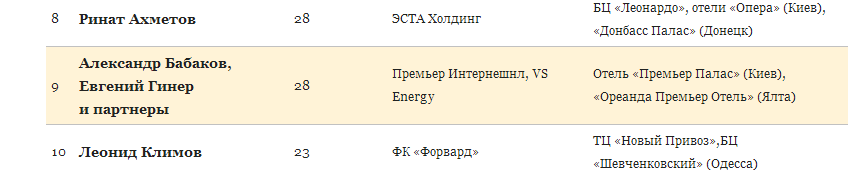 Именно партнеров Бабакова и Гинера украинские СМИ называют конечными бенефициарами , группы компаний, занимающейся всем: от энергетики и металлургии до гостиничного бизнеса.