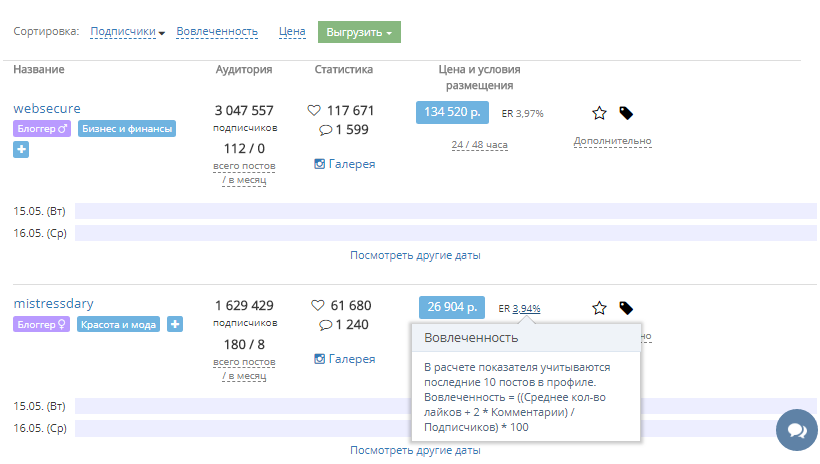 - Цель рекламы. Хотите привлечь как можно больше подписчиков — ищите аккаунты с большим числом фолловеров, нужны продажи — ищите профили с наиболее платежеспособной аудиторией, а если нужно увеличить узнаваемость бренда — нужно смотреть на охваты. Реклама на каждом из таких профилей будет стоить по-разному.