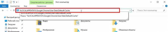 У Гугл хрома путь будет: %LOCALAPPDATA%\Google\Chrome\User Data\Default\Cache