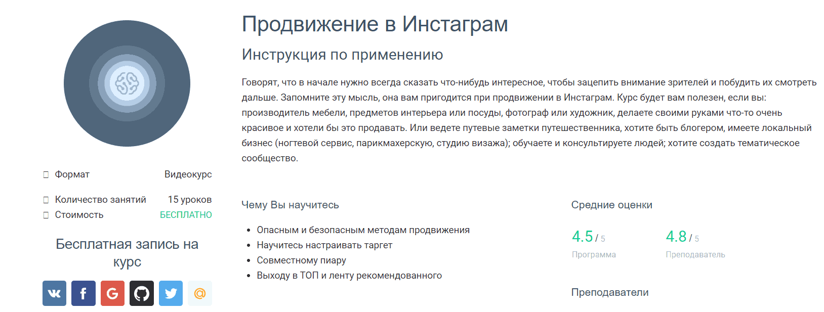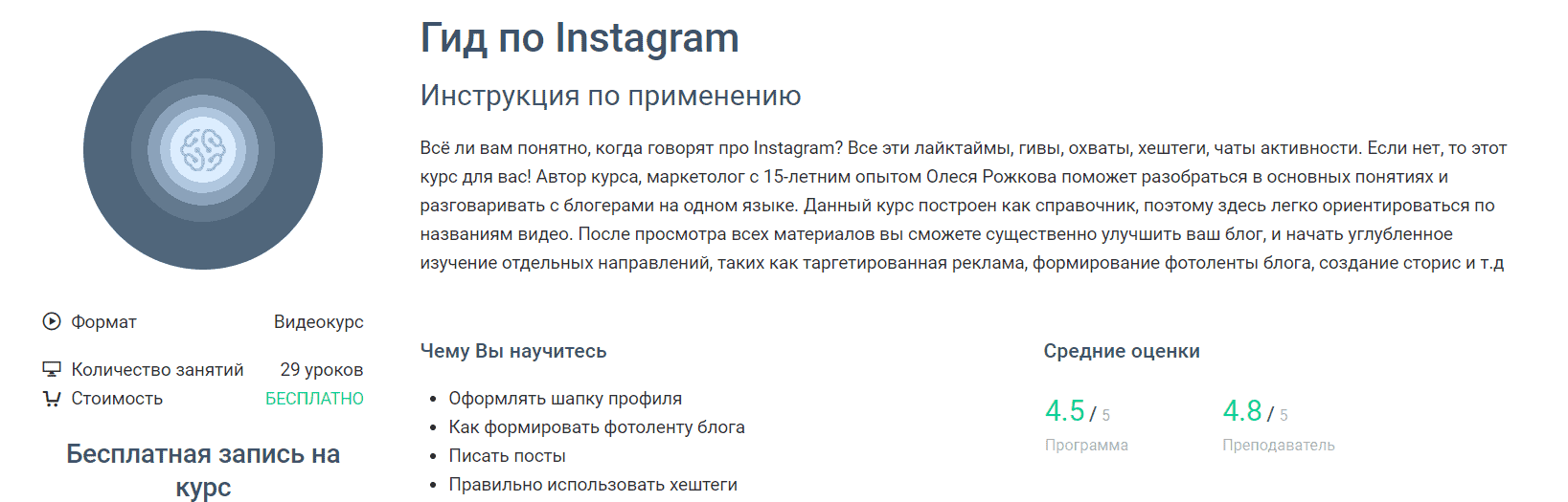 Теперь давайте рассмотрим бесплатные материалы, которые помогут в продвижении и заработке в социальной сети Instagram. Всего собрали 5 ТОПовых курса.