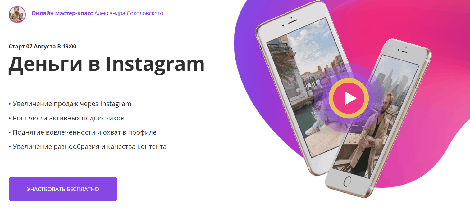 «Деньги в Instagram» — бесплатный онлайн мастер-класс от Александра Соколовского. Это более 300 слайдов с уникальной информацией. Без воды — только рабочие инструменты и советы.