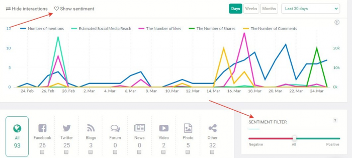 Сентимент-анализ (анализ «тонкости» текста, тональности) базируется на упоминаниях, которые содержат слова «любовь», «отличный», «прекрасный» и прочие комплименты.