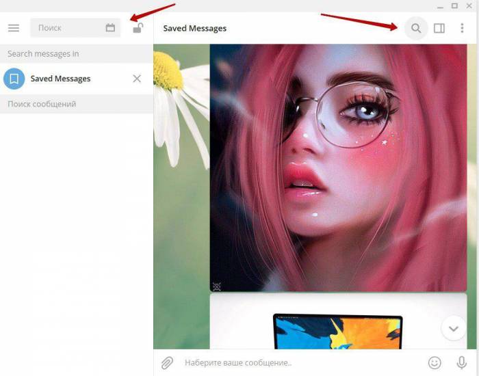 5. В телеграмме реализован удобный поиск по переписке. Пользователям не придется листать всю ленту сообщений для поиска нужного. Кликните по фотографии собеседника слева и выберите лупу в правом верхнем углу экрана. Задайте искомую комбинацию слов или цифр, и мессенджер моментально предложит интересующий кусок переписки.
