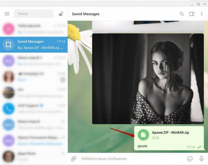 6. Мессенджер для ноутбуков удобен для отправки несжатых видео, фото и других документов любого формата. Можно создать zip архив и отправить другому пользователю или себе в облако.
