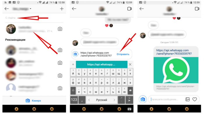 Так как добавить ссылку Whatsapp в Инстаграм в профиле означает сделать контакт общедоступным, то некоторые предпочитают делиться линком в личке. Для этого потребуется: