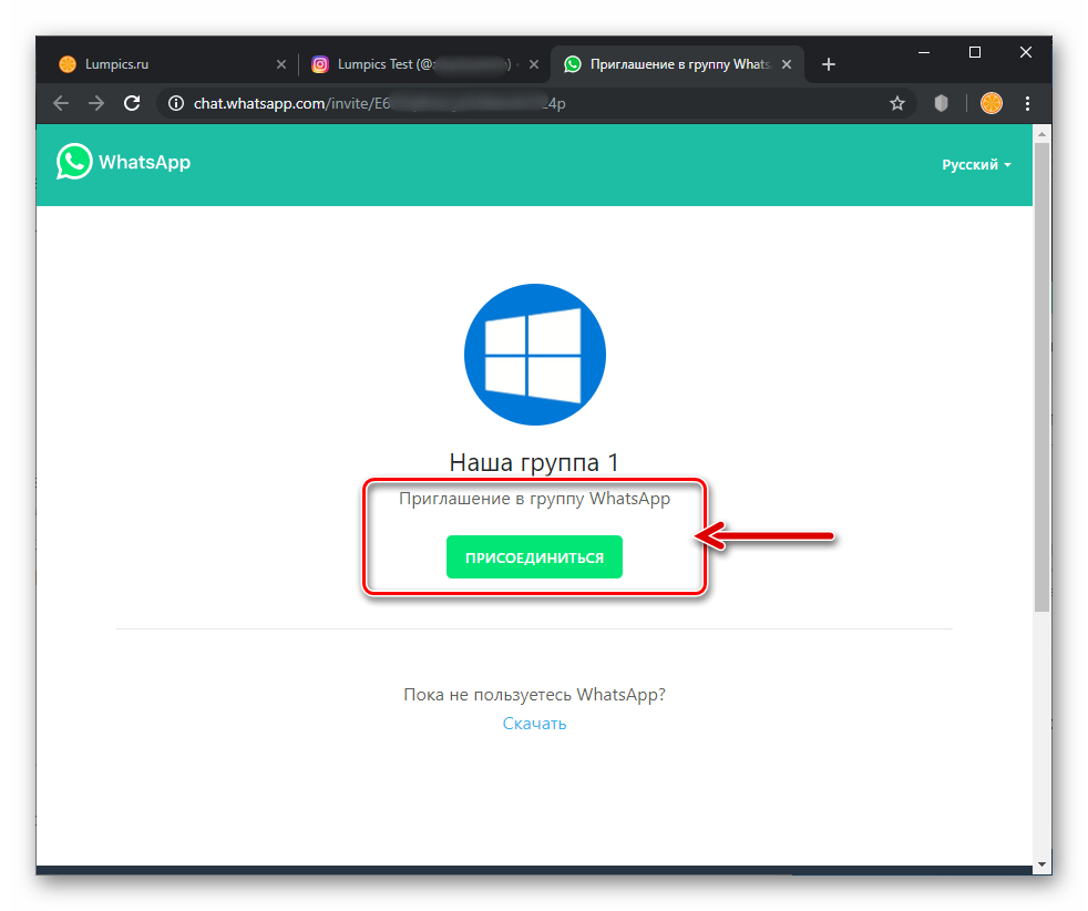 Изначально нужно получить ссылку-приглашение для собственноручно созданной в мессенджере группы, используя WhatsApp для Windows или приложение сервиса для мобильной ОС. О том, как выполнить указанное, рассказано в одной из статей на нашем сайте.