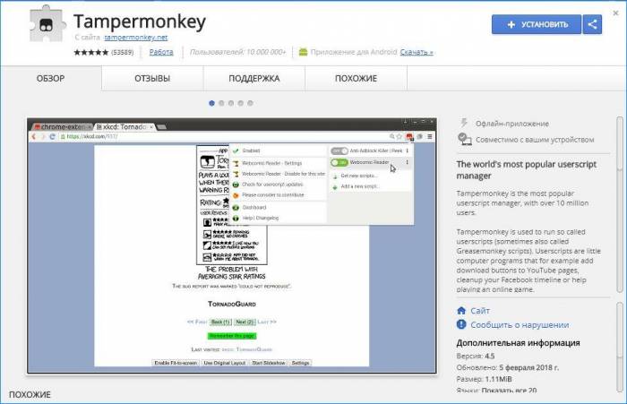Установить плагин для браузера очень просто – кликните на одну из выше ссылок, которые указывают на расширение для вашего браузера и воспользуйтесь кнопкой «Установить». Пакет будет автоматически установлен из официального репозитория дополнений.