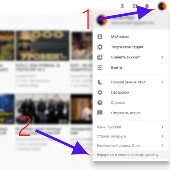 После того как вы открыли меню, обратите внимание на последний пункт «Вернуться к классическому дизайну».