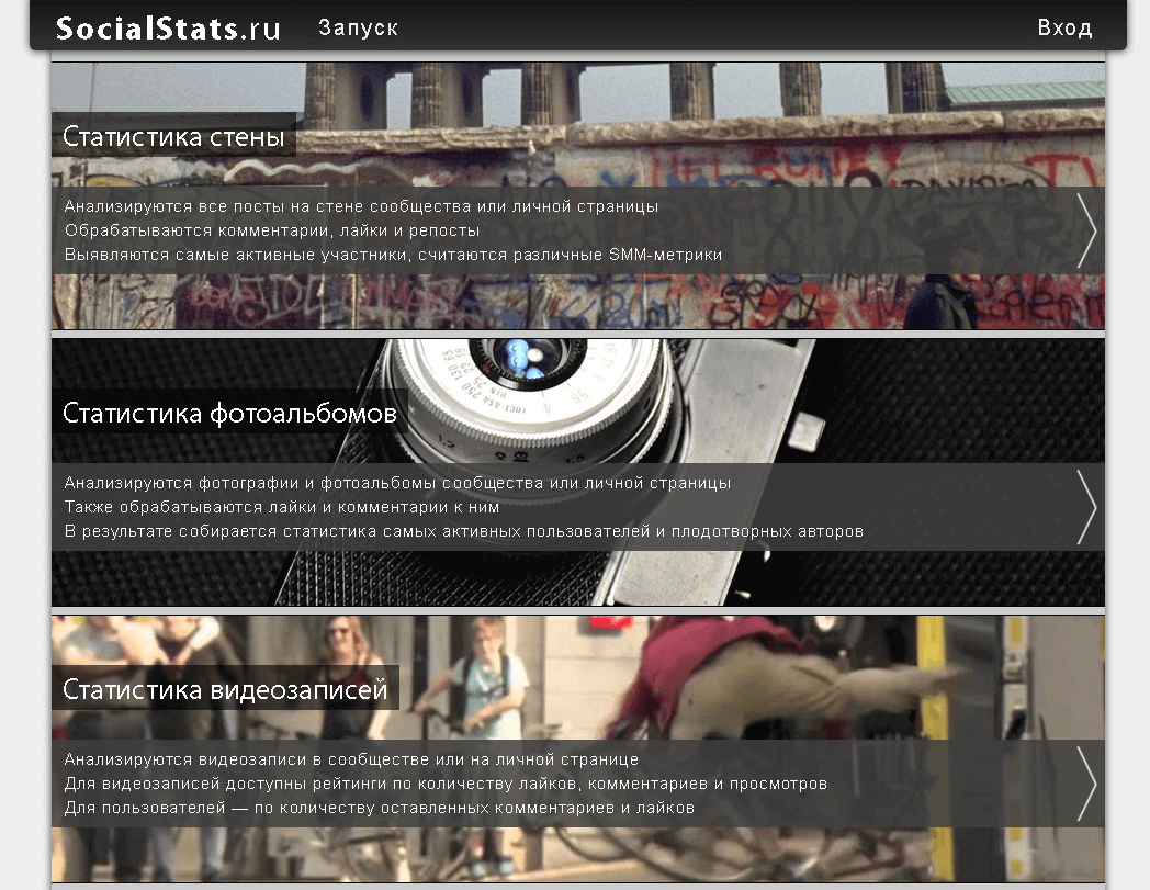 - Общая статистика сообщества. Рейтинги участников, постов, фотографий и видеозаписей по количеству собранных лайков, комментариев и репостов.