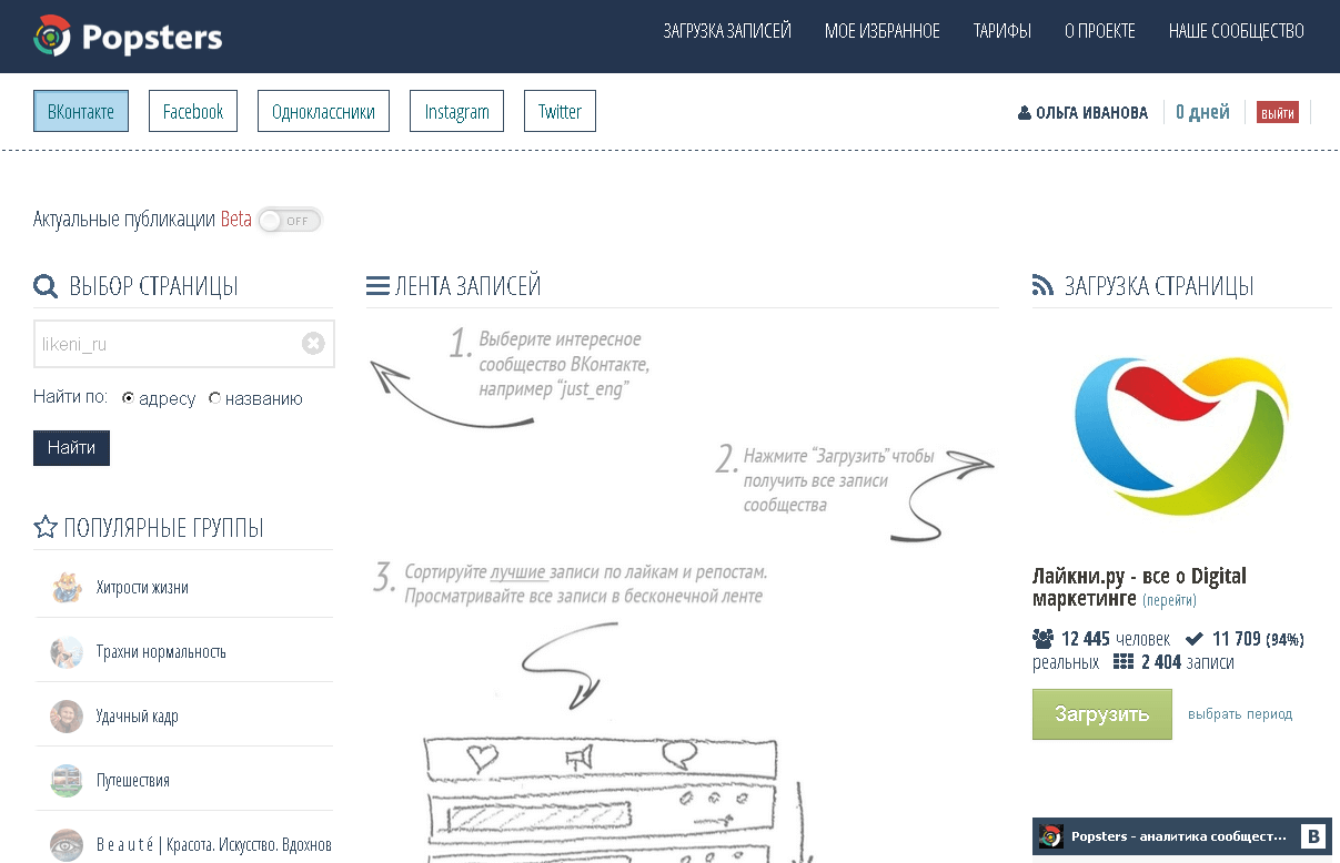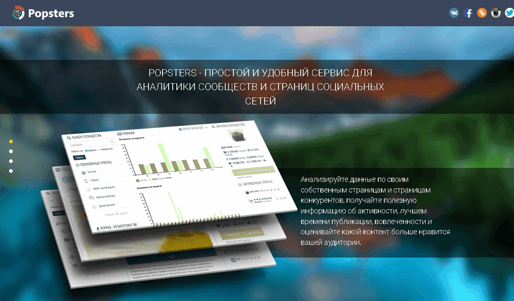 Продукт от создателей ныне почившего сервиса Postee. Основная задача, которую решает Popsters — анализ пристрастий аудитории и поиск наиболее интересного контента.