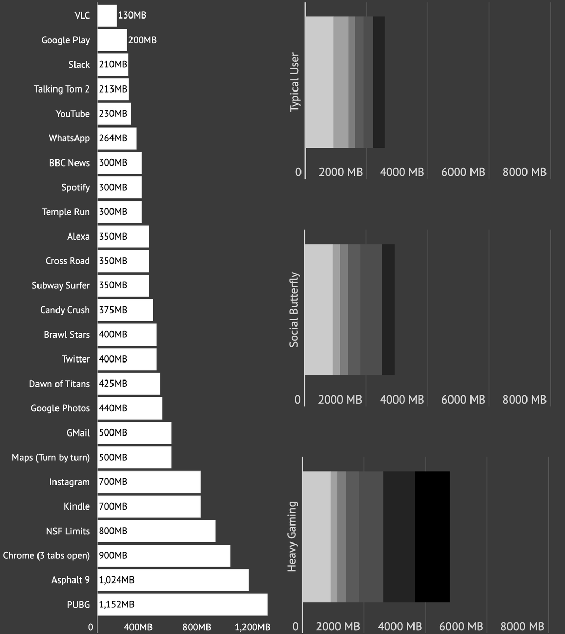 Разница видна невооруженным взглядом, но рядовой пользователь может сделать ошибочный вывод, что для работы условного PUBG, который съедает 1152 Мб ОЗУ, будет достаточно смартфона с 2 гигабайтами оперативки на борту. Это логичное предположение, но в данном случае человек не учитывает кучу других важных факторов.