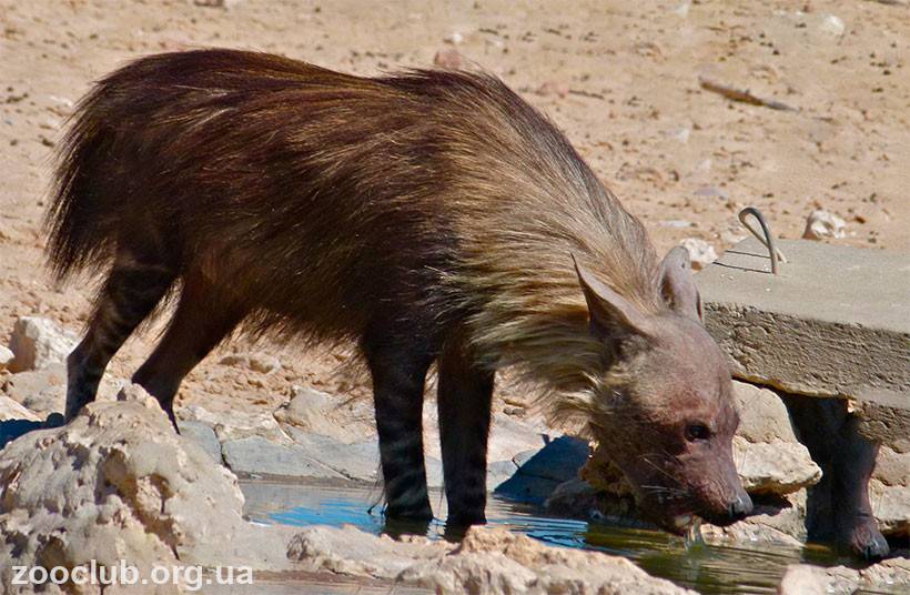 Длина тела (с учётом головы) бурой гиены составляет от 86 до 150 см, хотя в среднем колеблется в интервале от 110 до 125 см. Высота в холке — от 71 до 88 см, а длина хвоста — от 25 до 35 см. В отличие от пятнистых гиен, у бурых отсутствуют значительные различия между полами, однако самцы могут быть немного крупнее самок. В среднем взрослый самец весит от 40,2 до 43,7 кг, а самка — от 37,7 до 40,2 кг. Вес особей данного вида обычно не превышает 55 кг, хотя были зафиксированы отдельные представители с весом 67,6 кг и даже 72,6 кг. Шерсть длинная и лохматая, в частности на хвосте и спине. Основной цвет шерсти — тёмно-коричневый, а голова серая. Лапы тоже серые, но с тёмными горизонтальными полосками. Способные выпрямляться волосы, длина которых около 30 см, покрывают шею и спину. Бурые гиены обладают мощными челюстями: молодые животные могут раздробить кости ног спрингбока в течение пяти минут после рождения, хотя с возрастом эта способность ухудшается, так как зубы изнашиваются. Черепа бурых гиен крупнее, чем у живущих севернее полосатых гиен, а их зубы более крепкие, что указывает на лучшую специализацию к определённой пище. Бурые гиены обладают анальной железой, находящейся ниже основания хвоста, которая производит чёрные и белые выделения. Железа имеет углубление, покрытое белым секретом, которое разделяет пару долей, производящих чёрный секрет. Эти выделения наносятся на стебли травы примерно через каждые четверть мили их территорий, в частности, по границам.
