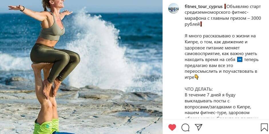 Пример продающего поста из личного блога организатора фитнес-туров на Кипр