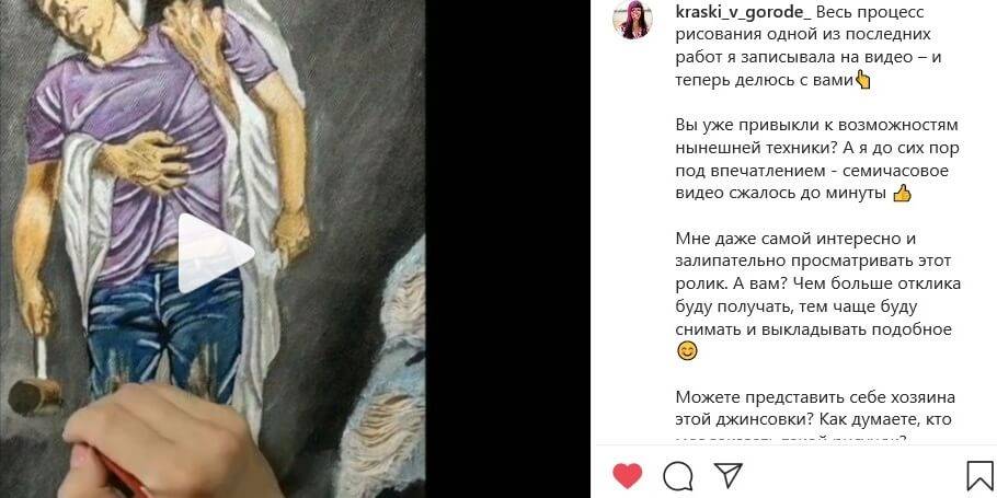 Пост из профиля художницы, который опубликован вместе с процессным видео