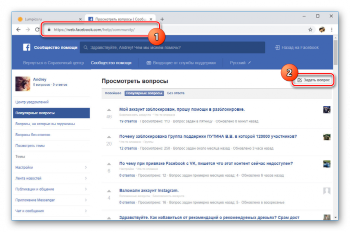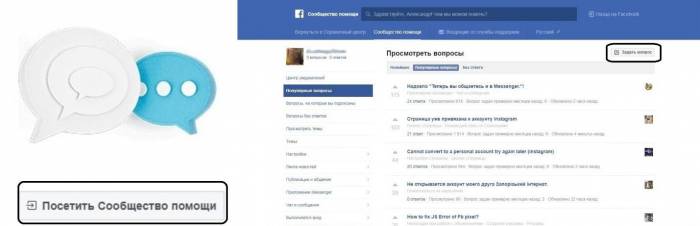 Дополнительно можете задать вопрос в сообществе помощи Facebook по ниже представленной ссылке. Здесь отвечают такие же пользователи, как и вы, поэтому фактически данный вариант не является обращением в службу поддержки. Однако иногда такой подходит может помочь с разрешением возникшей трудности.