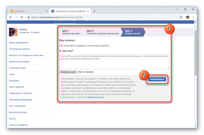 Так как в данном разделе отвечают пользователи, далеко не все вопросы можно решить обращением к ним. Но даже учитывая это, создавая новые темы, старайтесь соблюдать правила Фейсбука.