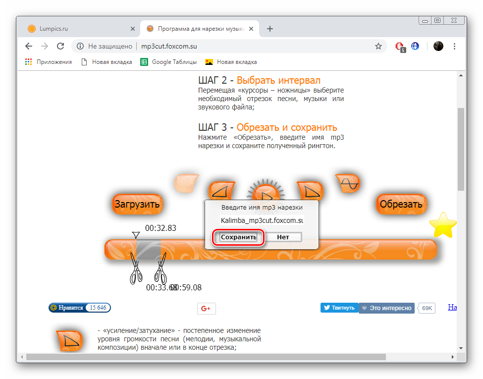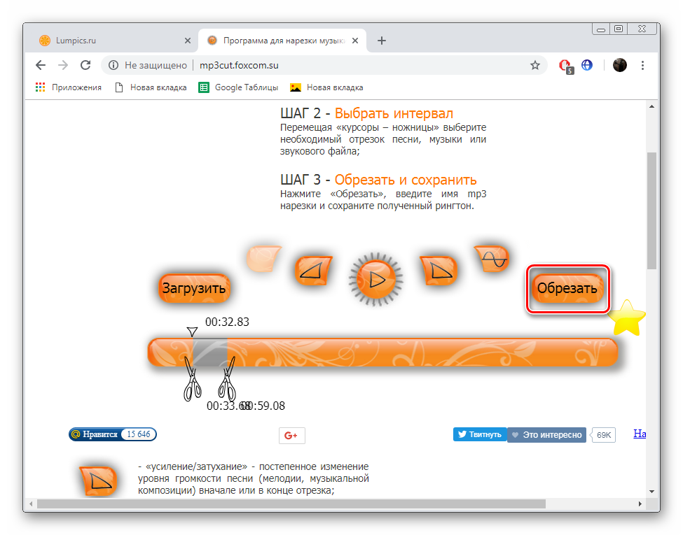 Подробнее: Вырезаем фрагмент из песни онлайн