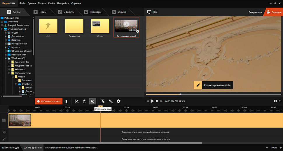 Если вам необходимо создать определенную атмосферу, можно заменить аудиоряд и установить вместо него музыкальный фон. Также есть возможность переозвучить видеоролик и создать звукозапись с помощью микрофона. Голосовые комментарии могут потребоваться при редактировании видеоуроков, вебинаров, игровых стримов и обзоров.