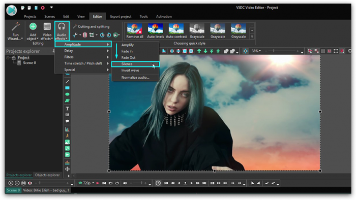 Совет: если основная причина, по которой вам необходимо убрать аудио из видео – это фоновый шум, вы можете исправить ситуацию, воспользовавшись специальными аудиофильтрами для шумоподавления, доступными в VSDC. Подробная инструкция опубликована здесь.