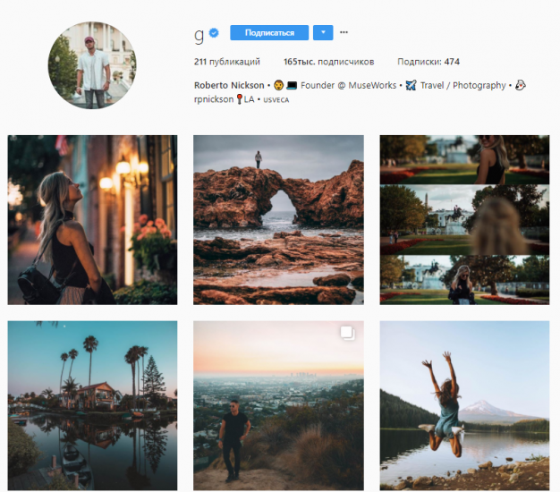 g — первый верифицированный аккаунт в моей подборке. Владеет им Roberto Nickson, основатель компании по разработке мобильных приложений.