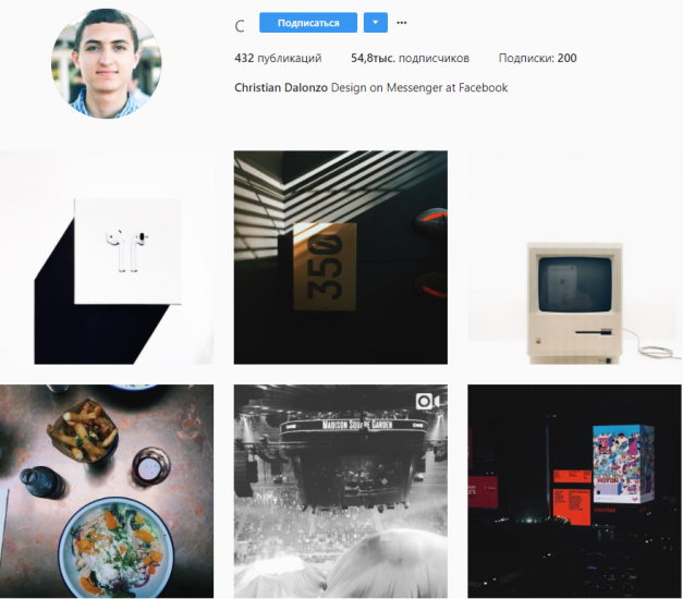 Кстати, сравните какой контент публикуется в аккаунте сейчас, и какие посты (на втором скриншоте) публиковались в Instagram на старте.