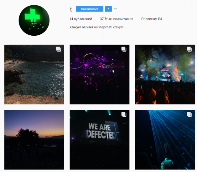 t — любитель музыкальных фестивалей и активных пользователь галерей. В подписчиках куча ботов, а первый пост датируется 3 августа 2017 года.