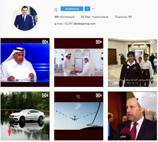 q — аккаунт каких-то новостей Катара, или что-то в этом роде. Много брендированного видео плашками в цветах флага Катара и буквой Q. Видео явно не авторские, подписей нет.