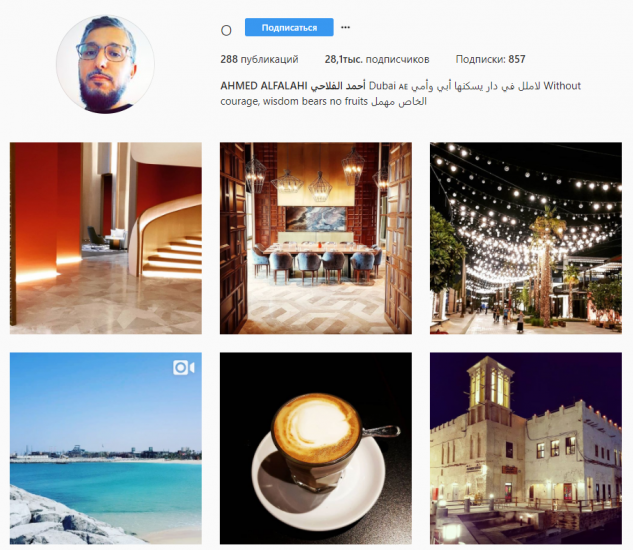 o — я не расист, но арабов в нашем списке больше, чем всех остальных. Рядовой аккаунт путешественника, который умеет пользоваться камерой. Мне залипнуть не захотелось.