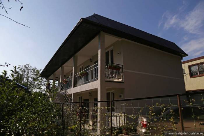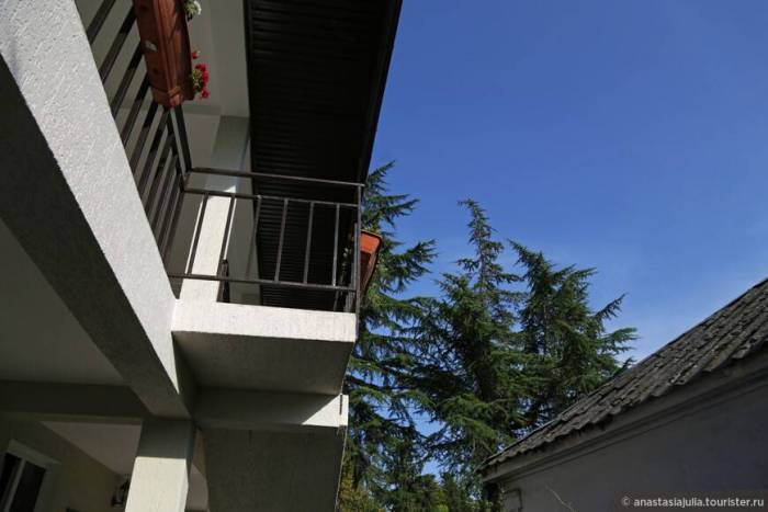 Общая хорошая кухня, если вам придет вдохновение организовать завтрак или ужин на свежем воздухе, и чтобы вкушать пищу с эстетическим наслаждением просторный двор для отдыха. Каждое утро я пила кофе с видом на вековые вечнозеленые, и, пожалуй, только ради этой чудной картинки стоит махнуть в Сухум!