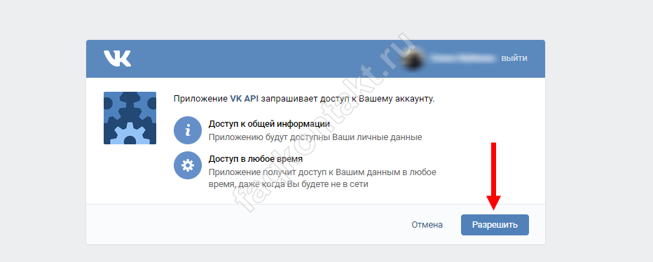 Теперь авторизуйтесь в своем профиле. Плагин сразу же запросит доступ к Вашей странице. В этот момент еще можно отступить. Но если Вы готовы попробовать, жмите «Разрешить»;