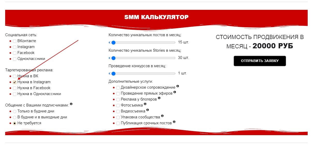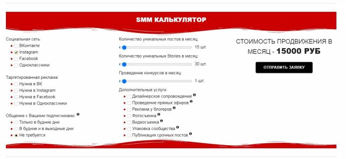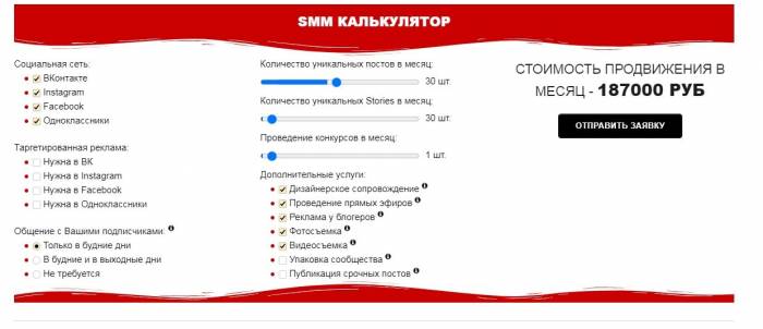 Интересно проследить за ценообразованием на примере агентства «КРАСИВО agency». На их сайте расположен удобной калькулятор стоимости.