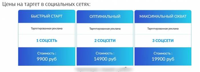 Агентства уральского региона пошли по другому пути. Настройка и ведение рекламной кампании уже включены во все их тарифы. Здесь отличие в другом. Агентство «KINETICA» внутри работы с одной социальной сетью предлагает различный функционал. «Оптима-промо» же предлагает все свои возможности сразу, а удорожание цены идёт по количеству социальных сетей.