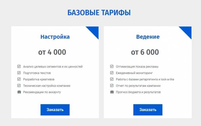 Некоторые агентства делают ставку на тип задачи, и устанавливают цену исходя из сложности и кропотливости работы. «Импульс» и «I KoD» предлагают настройку и ведение кампании по рекламе как разные тарифы.